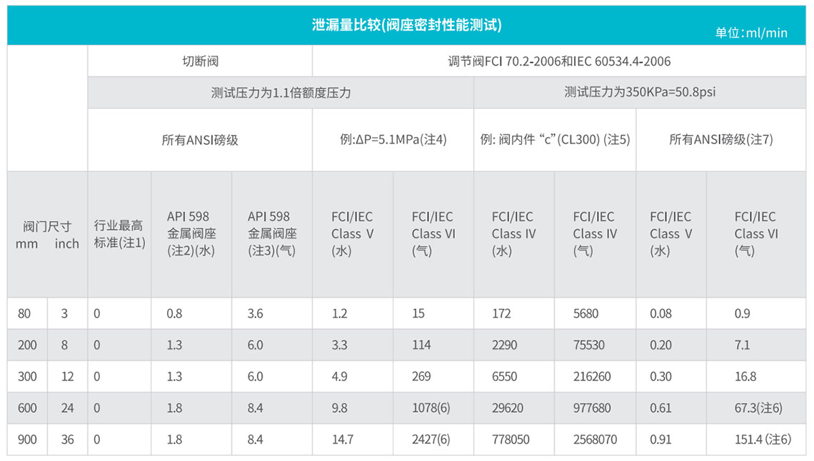 4.FCI 70.2和IEC534.4规定的泄漏量取决于测试压差。